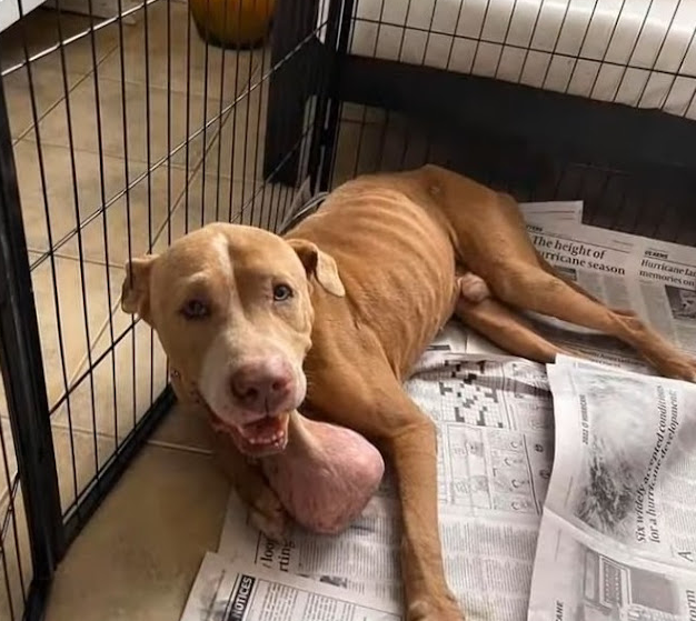At the veterinary clinic, the situation became even clearer. The tumor weighed at least twelve pounds — more than many small dogs weigh in total. She, meanwhile, was barely skin and bone. Her bloodwork showed weakness and malnutrition. The cable around her neck needed to be removed immediately.