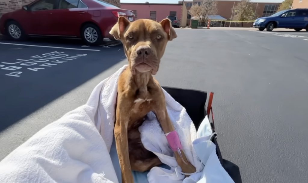 When rescuers first spotted Halia, she was lying motionless in a pile of garbage—so still that, for a moment, they feared she was already gone. Her frail body trembled with every shallow breath, her bones visible beneath dull, patchy fur. Painful wounds stretched across her back, and her hind legs would not move.