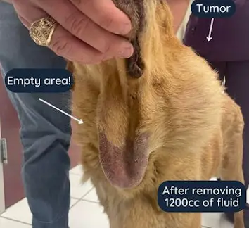 The veterinarians examined him immediately and found that the tumor had built up an incredible 1200cc of fluid. It was hard to imagine how he had survived with such pressure on his neck for so long.