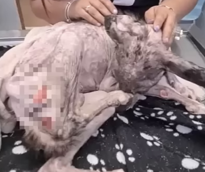 At the veterinary clinic, doctors worked tirelessly to save her. She was severely dehydrated, covered in ticks and fleas, and suffering from multiple infections. The vet feared she might not make it through the night.