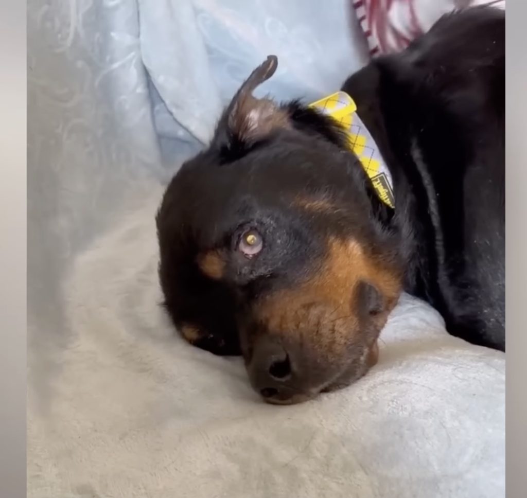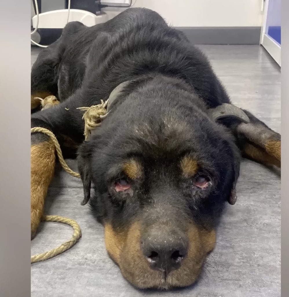 At the veterinary clinic, doctors worked quickly. Tests revealed that Charlie suffered from severe anemia and leishmaniasis—a parasitic disease caused by long-term neglect. His eyes were so inflamed that rescuers feared he might be permanently blind.