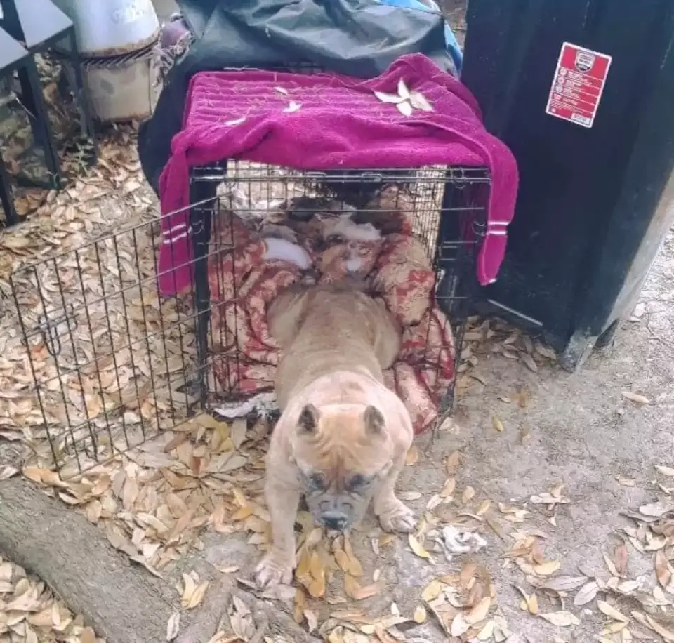 When she failed to become pregnant, that value disappeared. Instead of patience or care, she was met with neglect. The crate in the yard became her world. Her purpose, as he saw it, was over.
