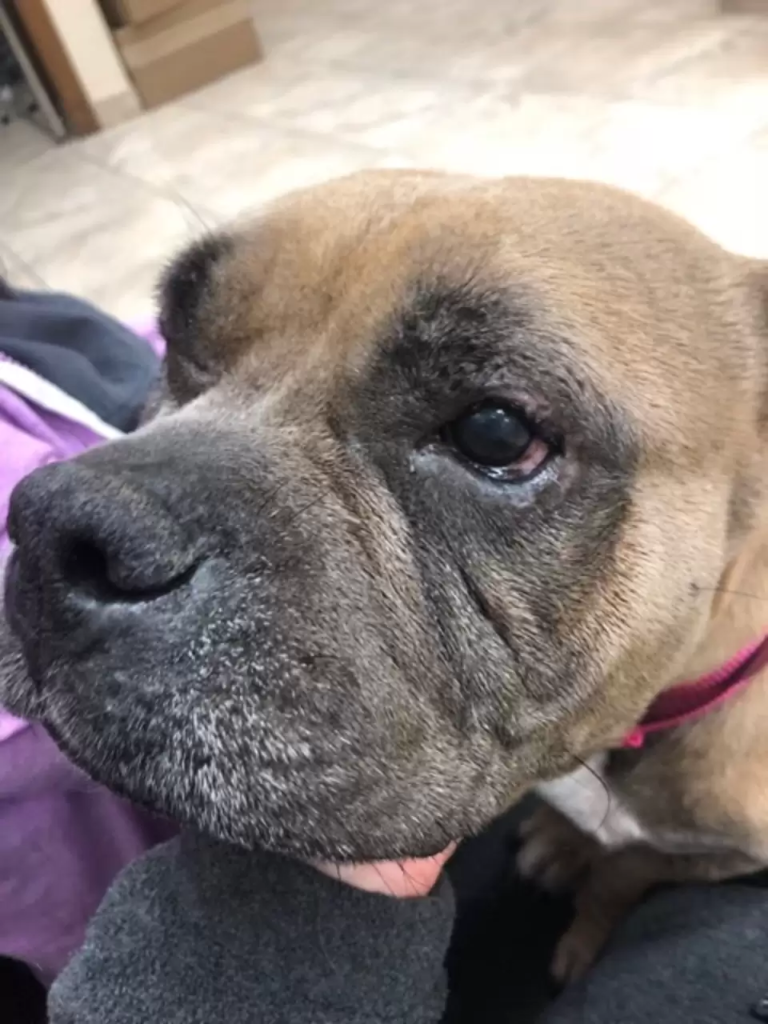 The vet also diagnosed her with entropion, a painful condition where the eyelids fold inward, causing the lashes to rub against the eyes. It was something she had likely been suffering with for a long time. Surgery would be needed to fix it.