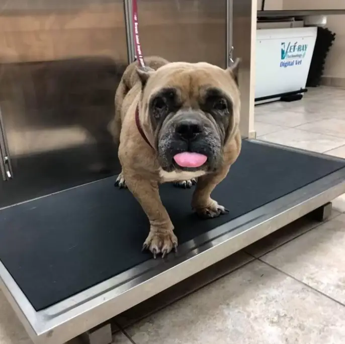 At the veterinary clinic, the full extent of Rubble’s condition became clear. She weighed only 44 pounds, far below a healthy weight for an American Bulldog.