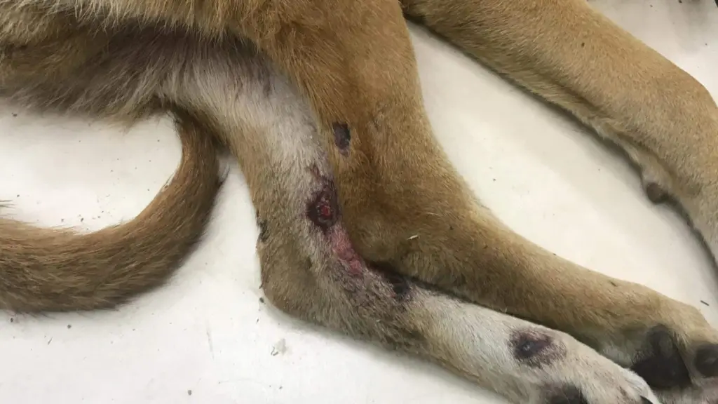The dog had suffered a severe spinal injury. There were signs of trauma that suggested he may have been hit by a car. There was concern about internal bleeding. His body was weak from pain and possibly from not eating for days.