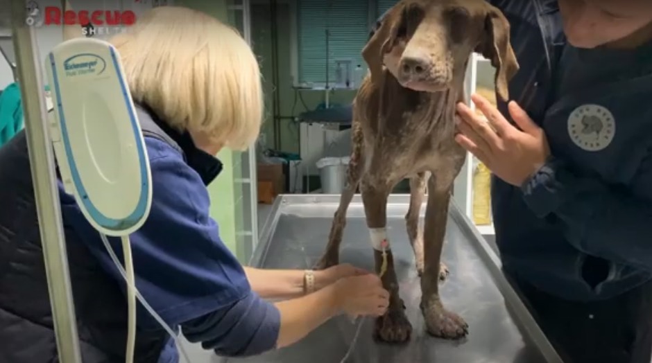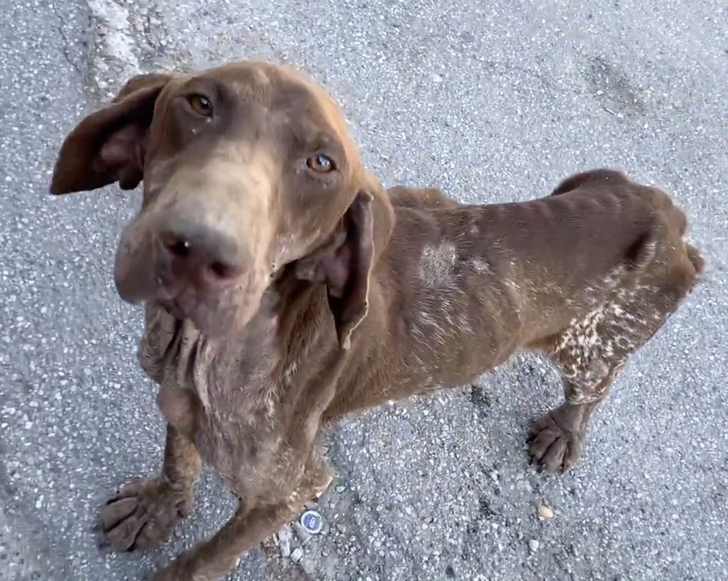 It started on an otherwise ordinary afternoon when a local rescue team received a distress call about a dog barely clinging to life. The caller’s voice trembled as they described what they had seen — a frail, ghostly figure wandering the streets, too weak to eat, too tired to move. His fur was dull, his ribs painfully visible, and his eyes. Lost somewhere between fear and surrender.