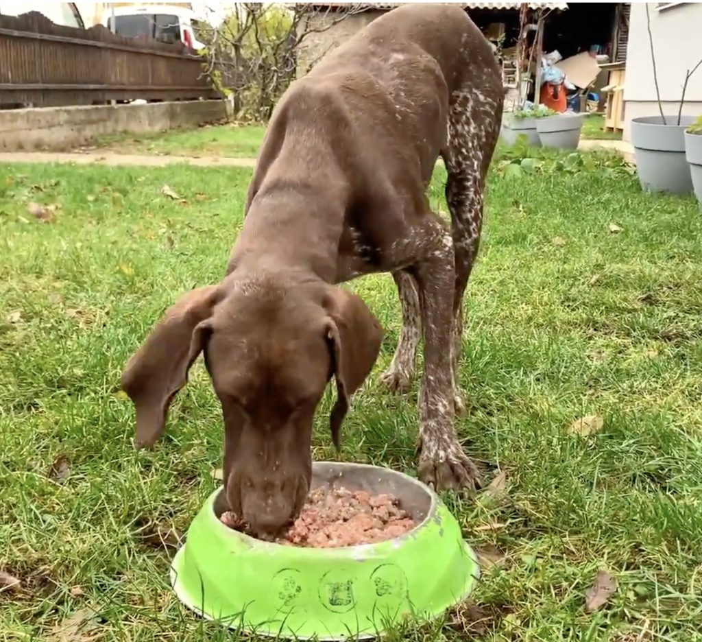 After nearly a week, Hopi began to eat — just a few cautious bites at first, then more. His eyes started to sparkle again, and that faint wag of his tail became a full, joyful swish.