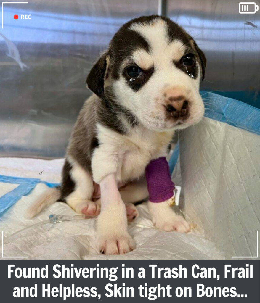 When the lid was lifted, the sight inside was devastating. Curled at the bottom was a Husky puppy, shaking and barely moving. His fur was dirty. His body was cold to the touch. His eyes were open, but they looked tired and distant.