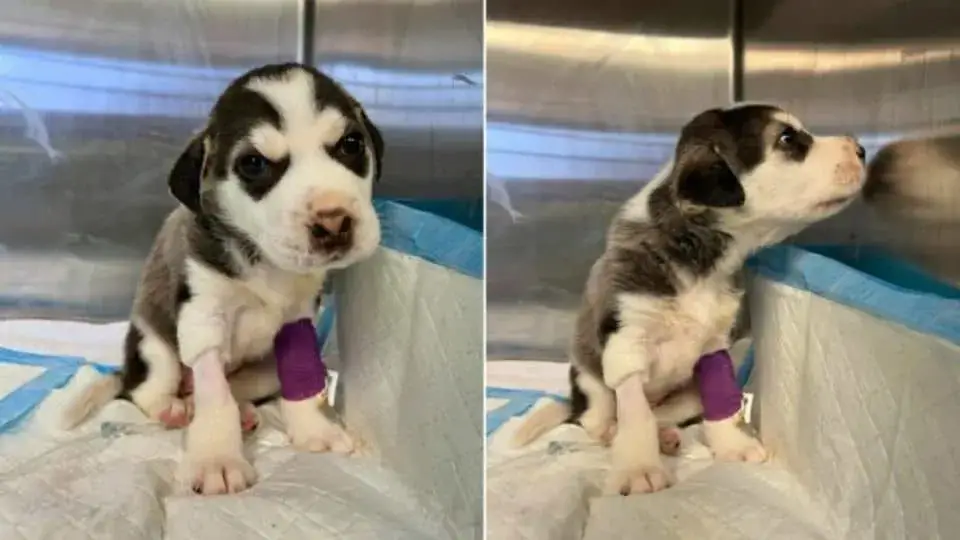 At the emergency clinic, the veterinary staff immediately understood the severity of the situation. The puppy, later named Kiss, was in critical condition.