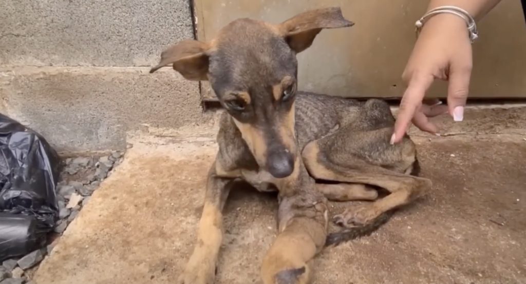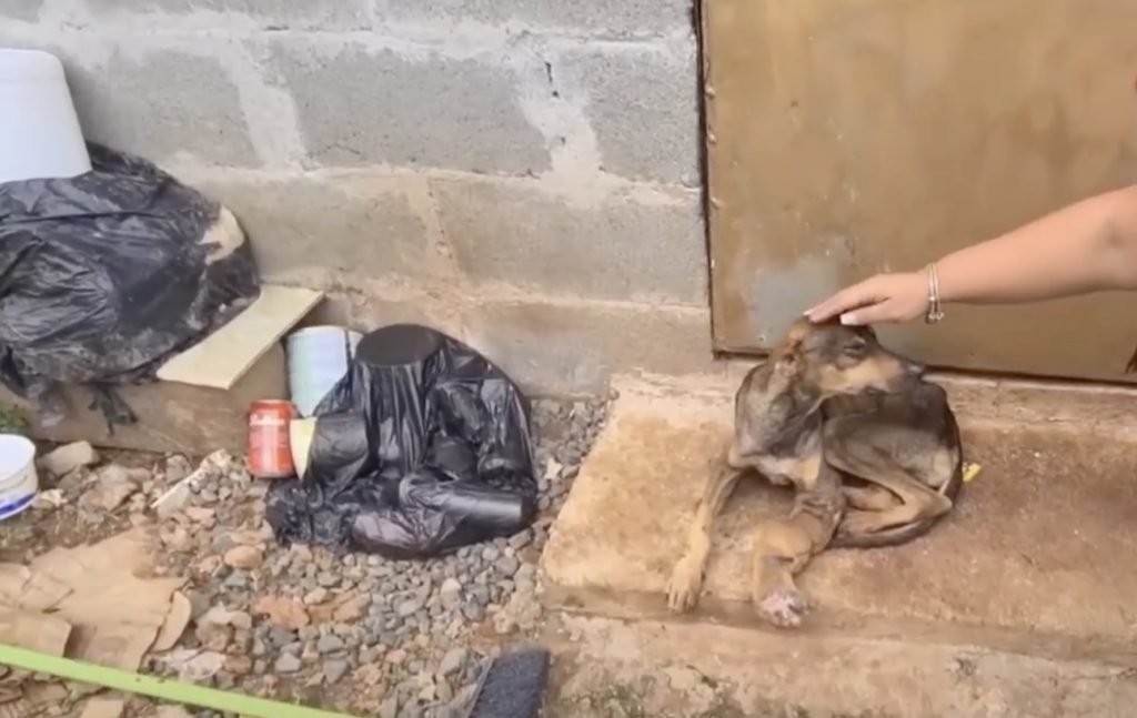 Neighbors noticed him early on — a thin, trembling figure who refused to leave. Through rain and cold nights, Hero stayed. His ribs showed through his dull fur, and his front leg had swollen painfully from an old injury. Still, he remained faithful, guarding the home that had long since stopped being his.