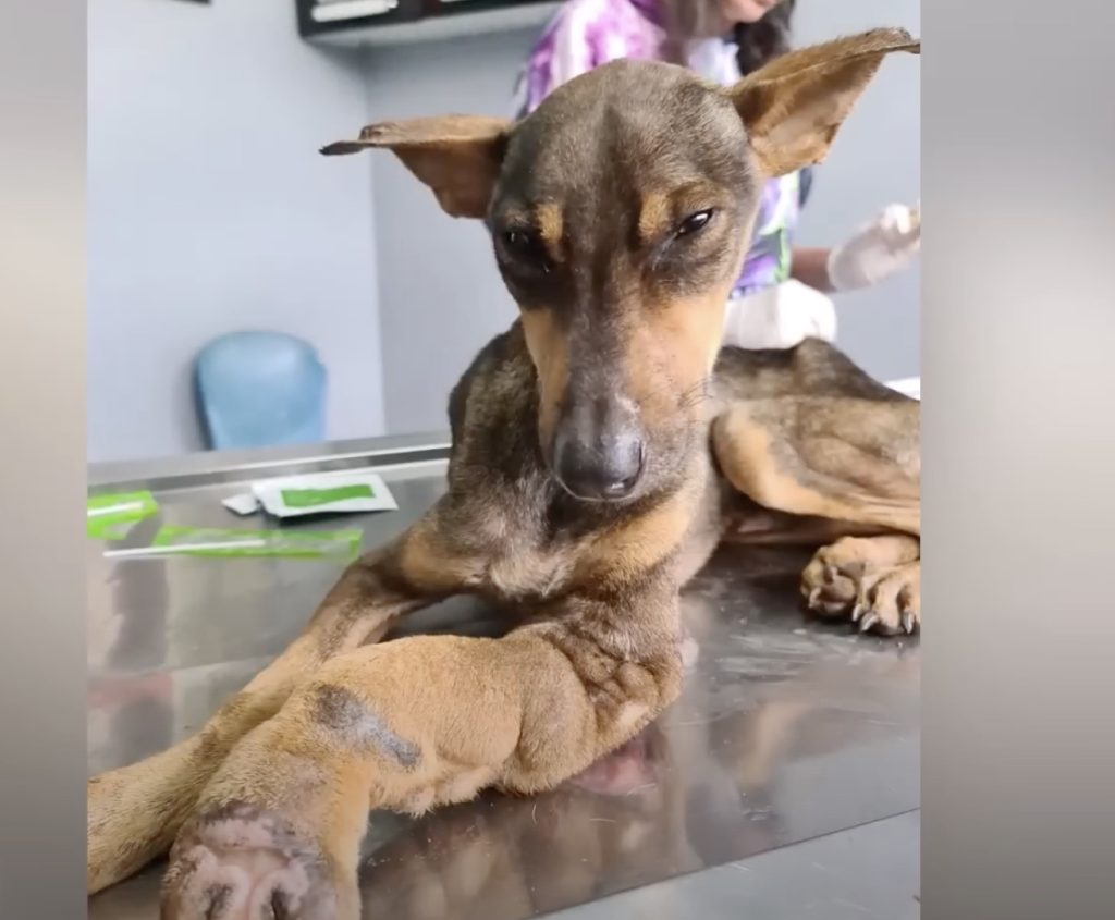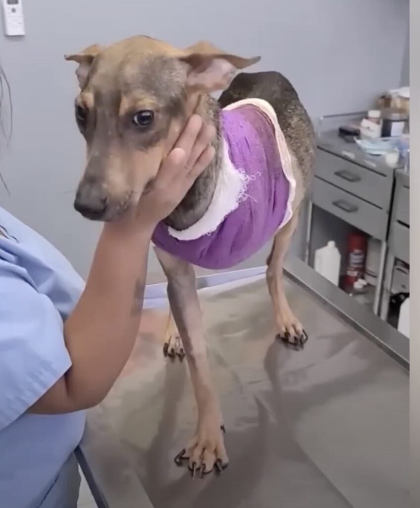The vet’s diagnosis came with both relief and heartbreak. Hero was starving and anemic, but there was more — a possible cancerous infection in his front leg. The injury was old, likely from a car accident that had never healed. It was clear: to save his life, the leg would have to be removed.