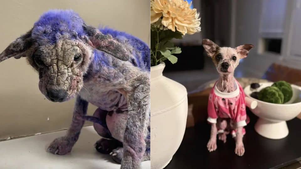 Violet, a severely neglected dog found covered in purple antiseptic, was rescued from a Texas shelter and given a second chance at life. Through veterinary care, dedicated fostering, and patient love, she transformed from a suffering stray into a thriving companion with a forever family.