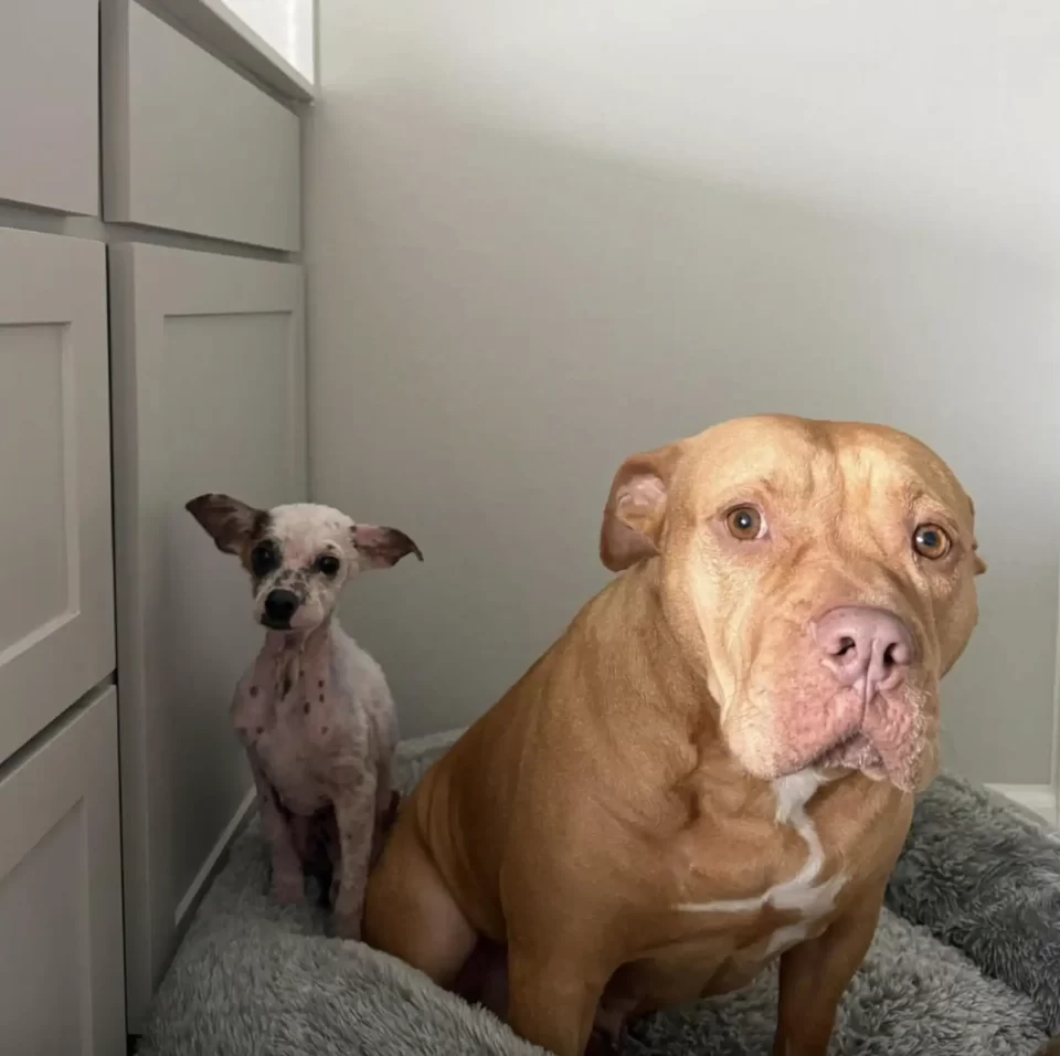 Violet also developed a close bond with Bri’s pittie. The two became inseparable, often curling up together as if they had always been family. Their companionship brought Violet comfort and confidence, and she blossomed under the gentle guidance of her new friends.